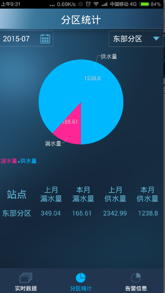 1)系統內置漏損組成分析功能,可動態識別突發用水和漏水,支持移動端推送,提高管控決策的可靠度和針對性。
