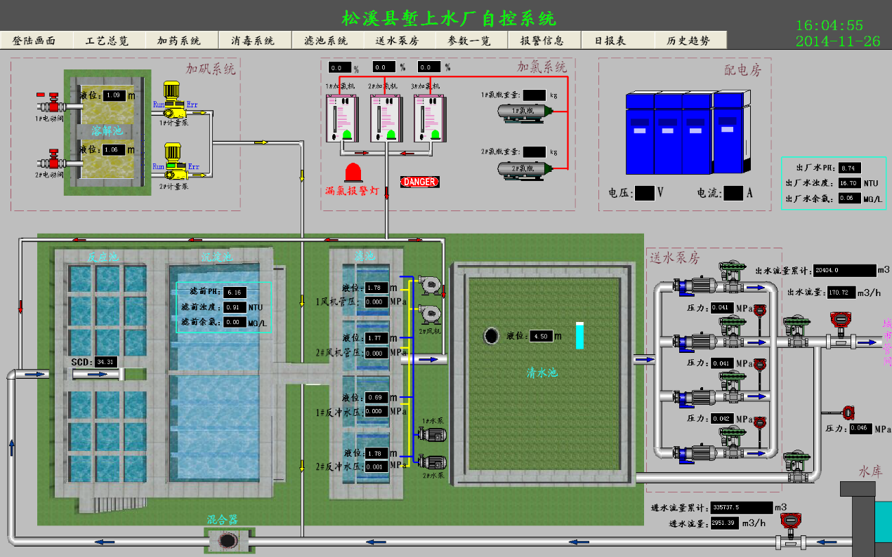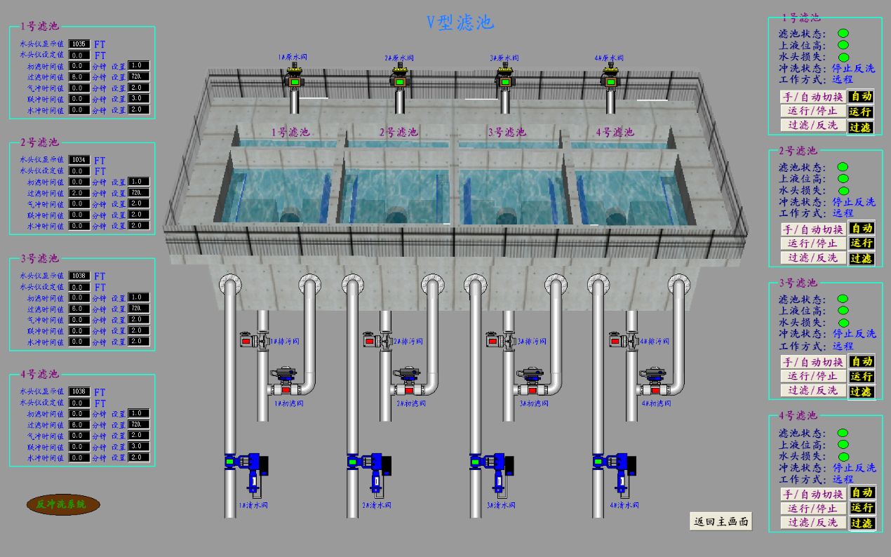 制水廠自動化系統(tǒng)是可靠地實現對制水廠中各水處理設備以及各個生產環(huán)節(jié)全過程的自動監(jiān)控,達到現場無人值守、控制中心少人值班的自動化程度,使得整個給制水系統(tǒng)實現自能化控制。