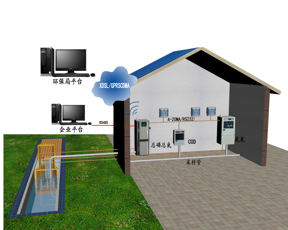 污染源在線監測系統是一套以水質在線自動分析儀為核心,運用現代傳感器技術、自動測量技術,自動控制技術、計算機應用技術等技術,結合相關的專用分析軟件和通訊網絡所組成的一個綜合系統。一般監測參數有:COD,氨氮,總磷總氮,PH,電導,流量。通過環保數采儀將儀表的數字量信號實時送至環保局監管平臺,實現對企業排污情況的實時監控。