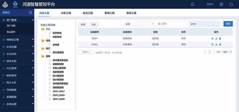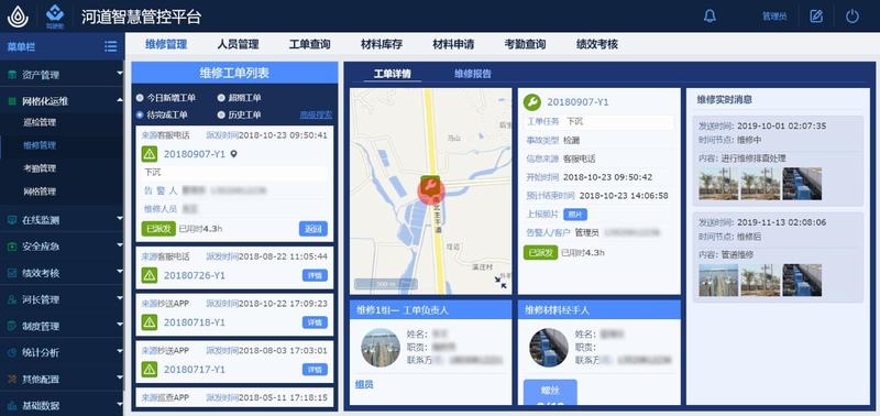 網格化運營管理:主要針對巡檢,維修,考勤,河網管理,同時也會連帶著人員,庫存材料,績效考核等管理功能。