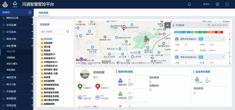 河長管理:主要是針對河長基礎信息,公眾投訴和建議,以及政府通報信息等做信息管理。