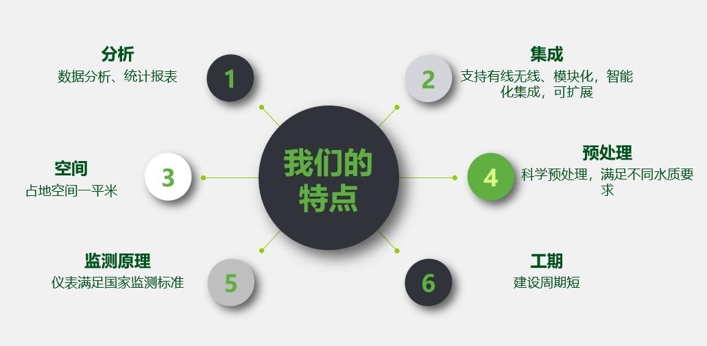 農村污水自動監測站以在線自動分析儀器儀表為核心,利用現代傳感器技術、自動控制技術、計算機應用技術等高新技術將水質監測系統集成一平方機柜中,實現數據遠程自動傳輸、無線通訊等功能;設備集成度高。與傳統的污染源水質監測站相比,內部布局合理,外形美觀、搬遷便捷、建設成本低、適合廣泛布點。