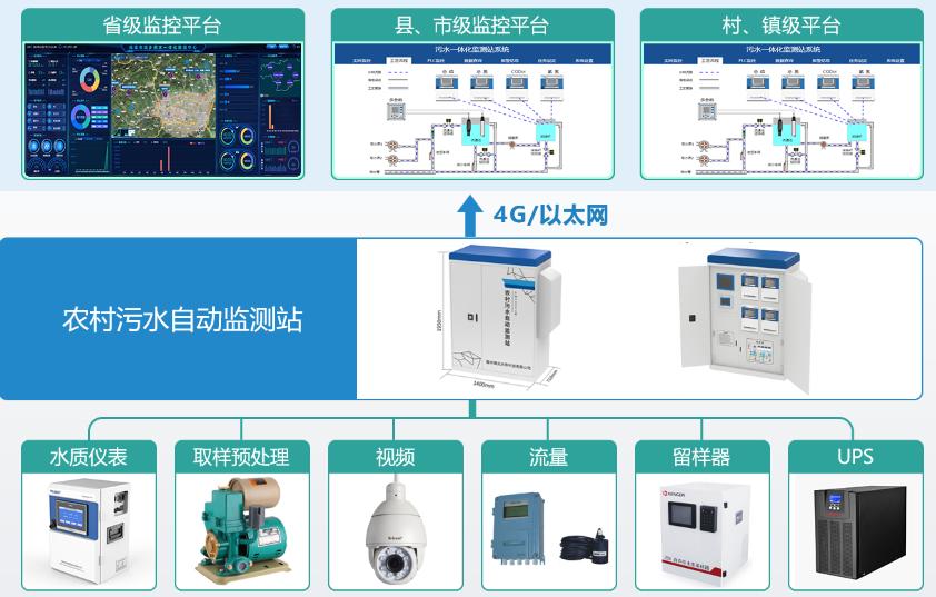 農村污水自動監測站由采水單元、預處理及配水單元、分析單元、數據采集與傳輸單元、控制單元、輔助單元等組成,可選配留樣器、電磁流量計、UPS、遠程監控平臺。