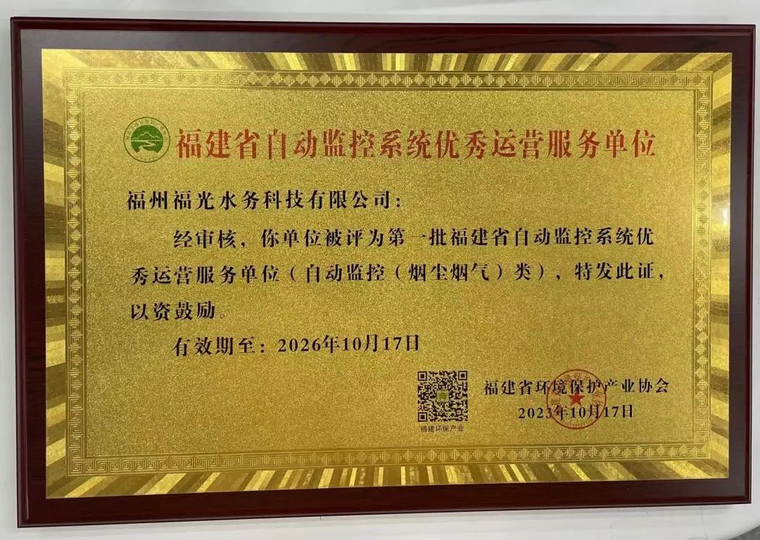 其中,福光水務憑借企業綜合實力及在第三方運營領域的豐富經驗,成功獲評“自動監控(水)類”和“自動監控(氣)類”第一批福建省環境污染治理設施優秀運營服務單位。