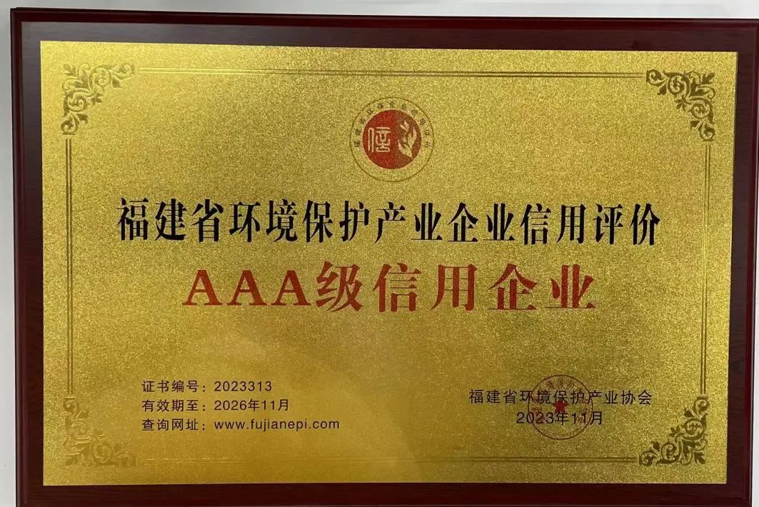同時,福建省環境保護產業協會發布2023年度福建省環境保護產業企業信用評價結果公告,福光水務獲評AAA等級。我司將繼續完善自身建設,自覺遵守福建省環保產業《行規行約》,誠實守信,合法經營,積極履行社會責任,不斷壯大自身實力,在企業誠信建設和信用管理方面發揮表率作用。